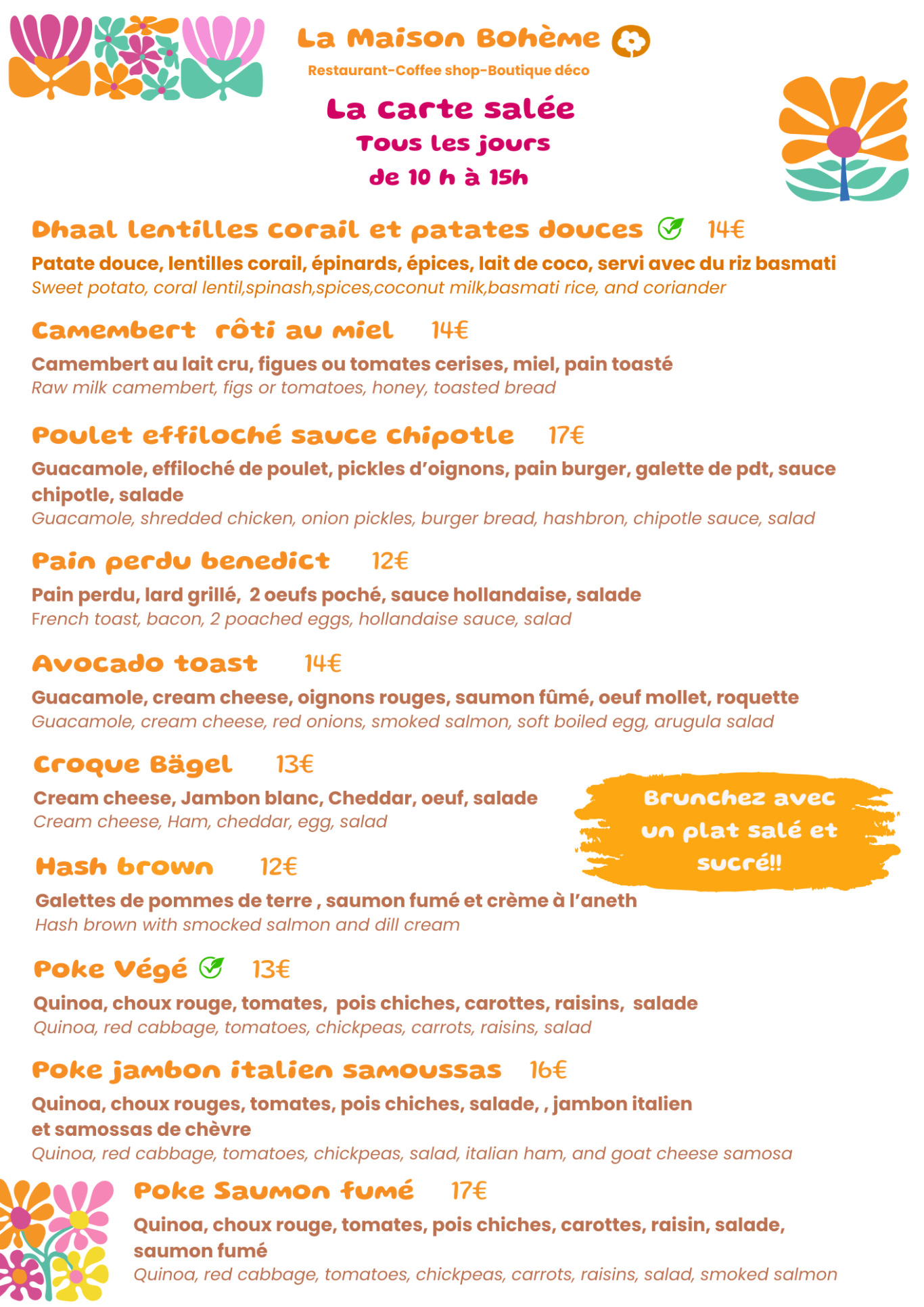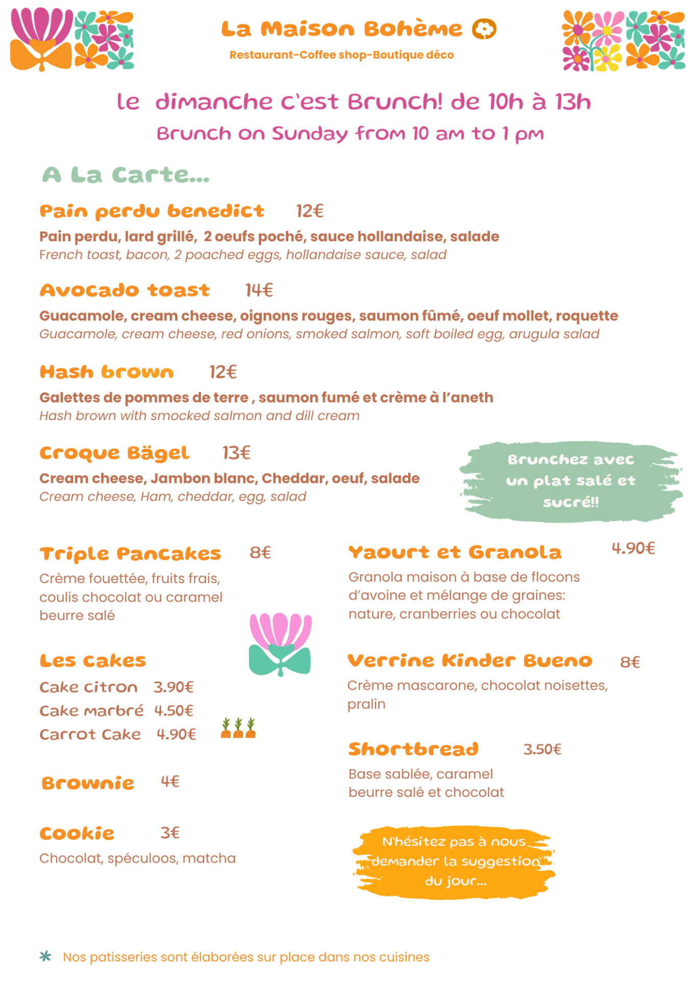 Le Dimanche c'est aussi brunch à la carte!